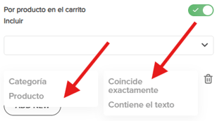 Los funnels son una forma eficaz de convertir más visitantes en clientes. Con este nuevo disparador, ahora puedes mostrar funnels según el producto específico o la categoría de producto que el cliente tenga en su carrito.